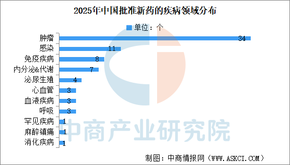 感染性疾病領域11款創新藥獲批,免疫疾病、內分泌&代謝疾病這兩個慢性大病種也是獲批新藥較為集中的領域,在2025年分別有8款和7款新藥獲批。