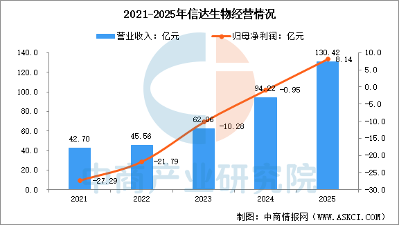 2025年,信達生物營業收入為130.42億元,同比增長38.4%,歸母凈利潤為8.14億元,首次實現年度盈利。2025年醫藥產品銷售收入118.96億元,同比增長44.6%。